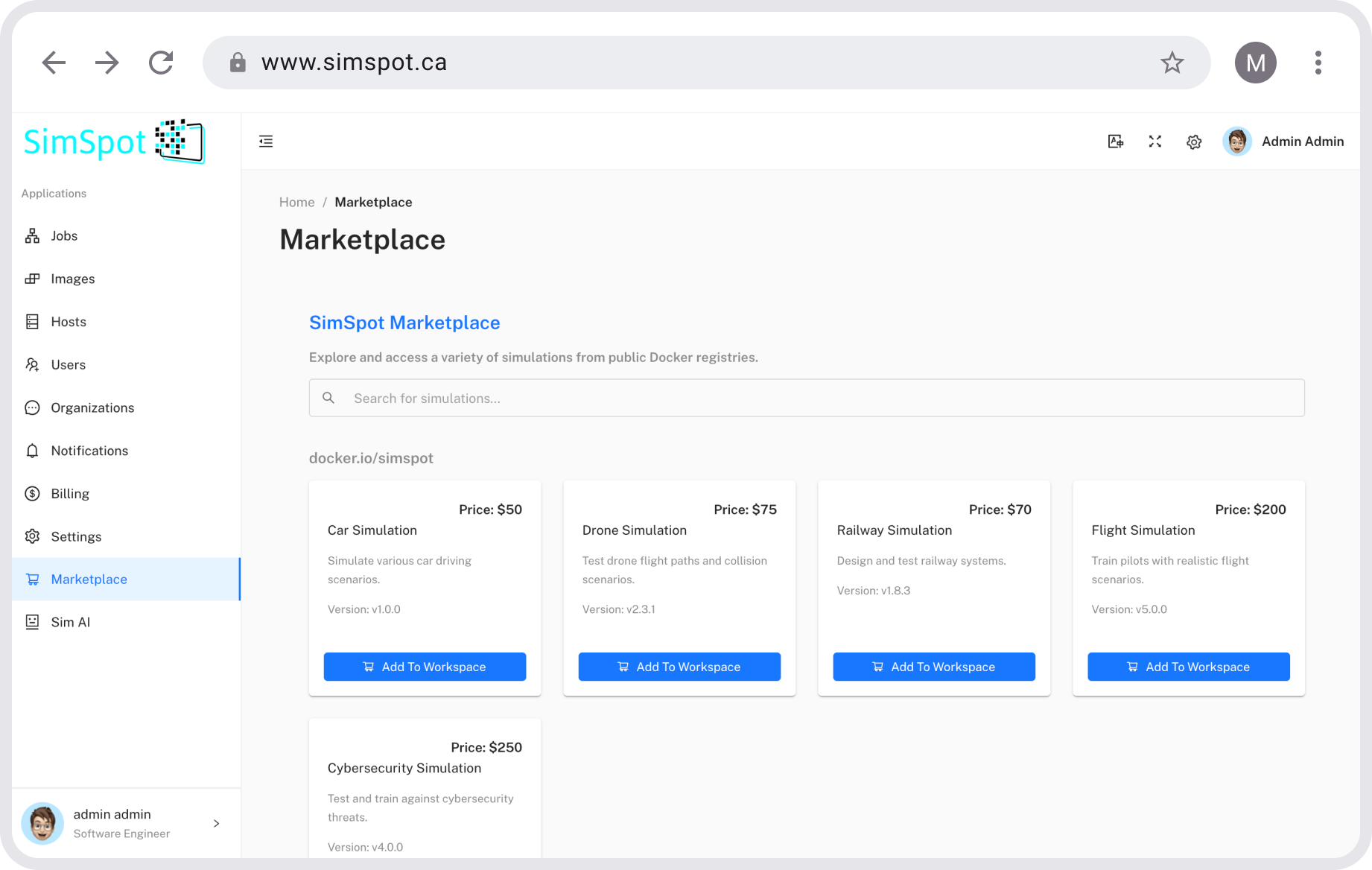 SimSpot streamlines the deployment and management of simulations, enabling faster prototyping of services and earlier feedback.