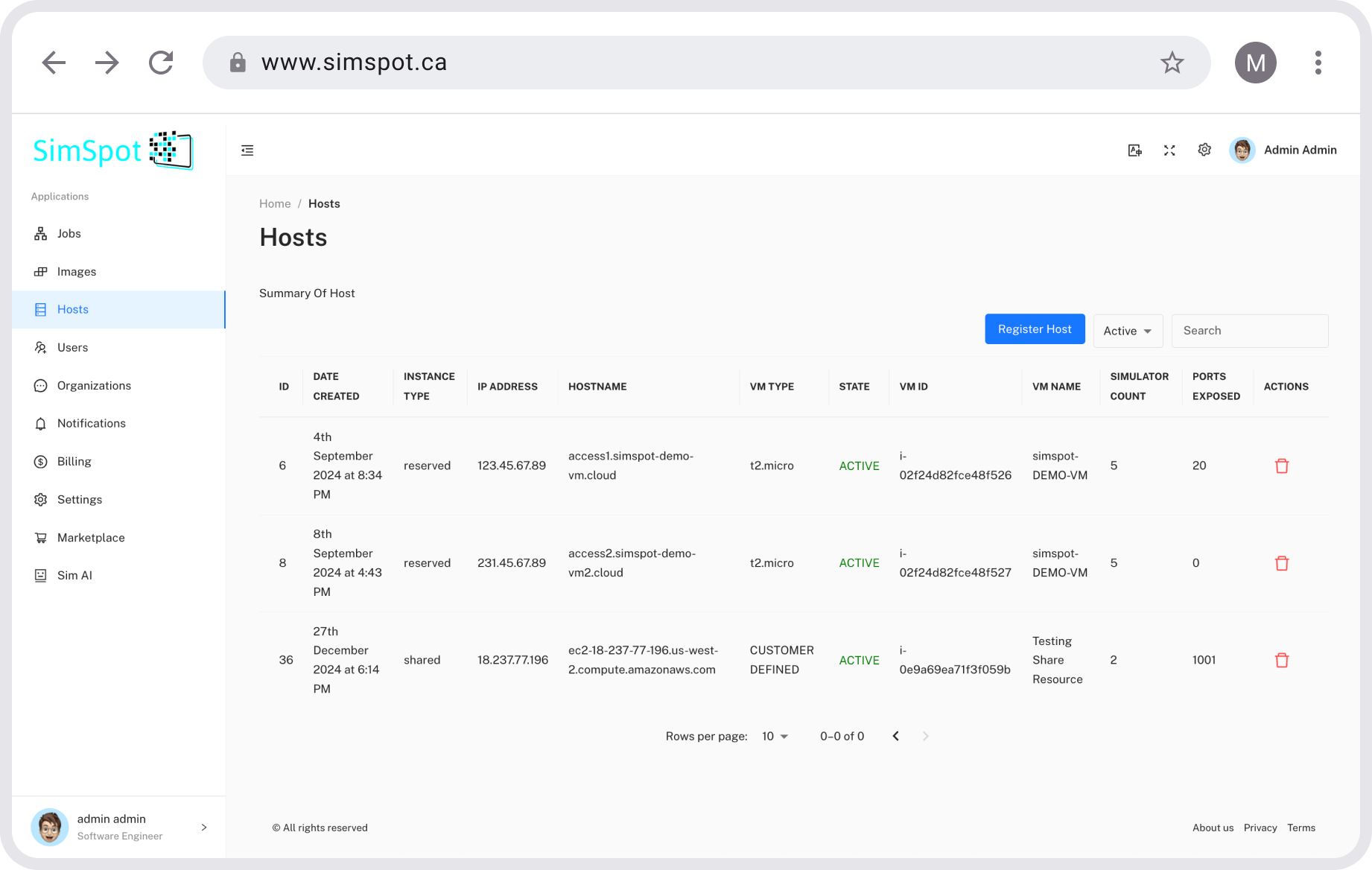 SimSpot’s an all-in-one platform that allows Developers to confidently set up containerized infrastructures at scale. Its smart algorithm ensures efficient port allocation, providing dedicated Control and Data ports for seamless simulation interaction and command execution.